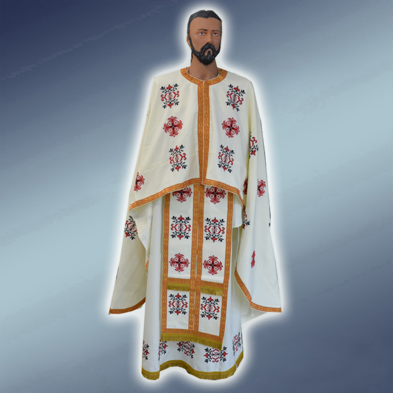 Одяг священника складають: підризник, єпітрахиль, пояс, поручі і фелонь (або риза). Одяг диякона складають: стихарь, орар і поручі.