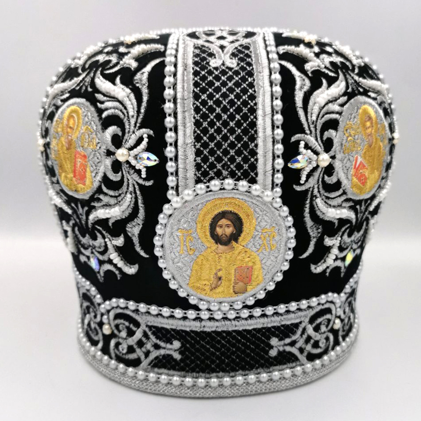 Символіка: митра нагадує про терновий вінець Спасителя, підкреслюючи жертовність та смиренність у служінні. Статус: свідчить про певний духовний рівень та досягнення священнослужителя. Матеріали: оксамит, парча, золоті та срібні нитки, коштовне каміння, вишиті ікони. Оздоблення: православні орнаменти, хрести, ікони святих.