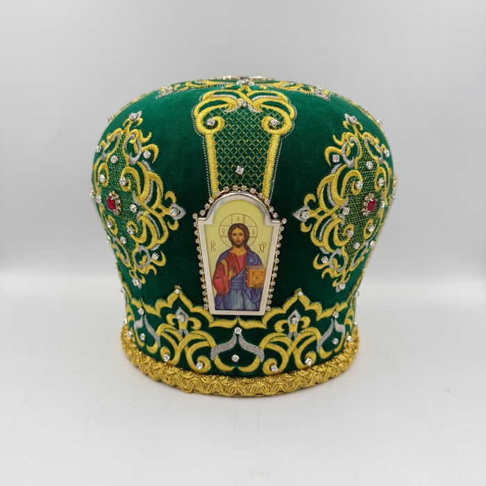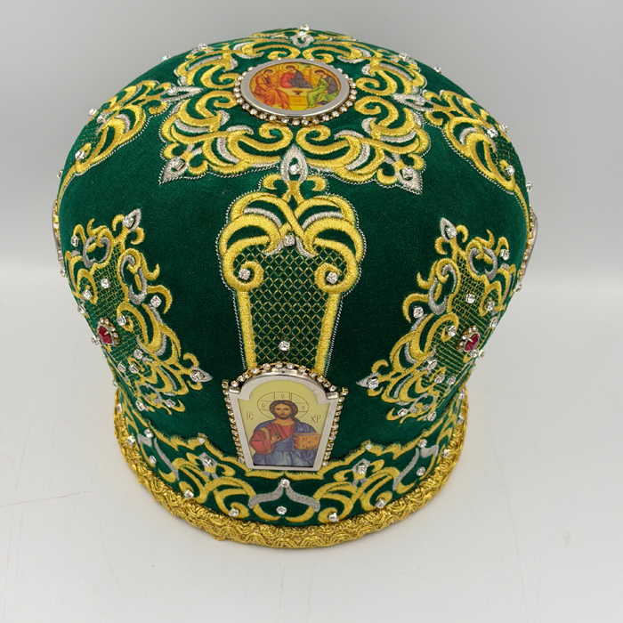 Митра темно-зелена з камінням ЛІ-хрест 56р.5250.00 грн.