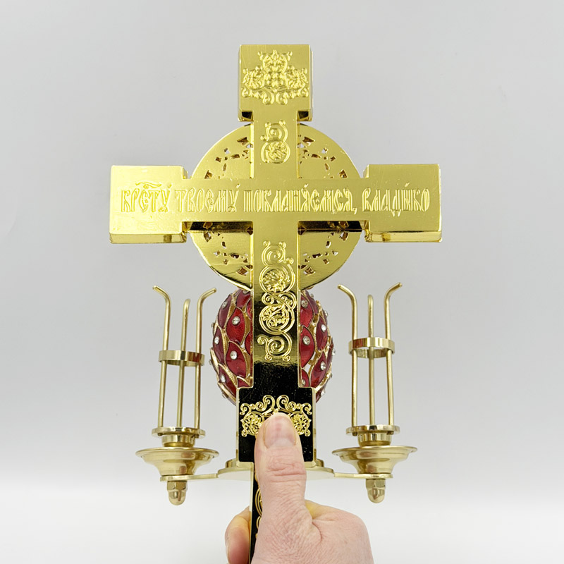 Великодній трисвічник з хрестом латунний в руку священику, який символізує незриме світло Святої Трійці. Цей трикірій з хрестом використовується лише на Великдень і Світлу Седмицю