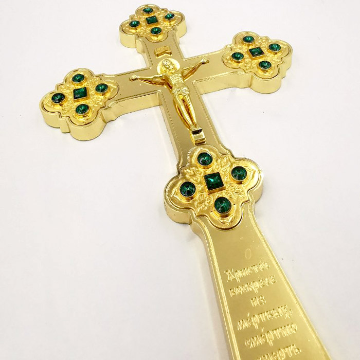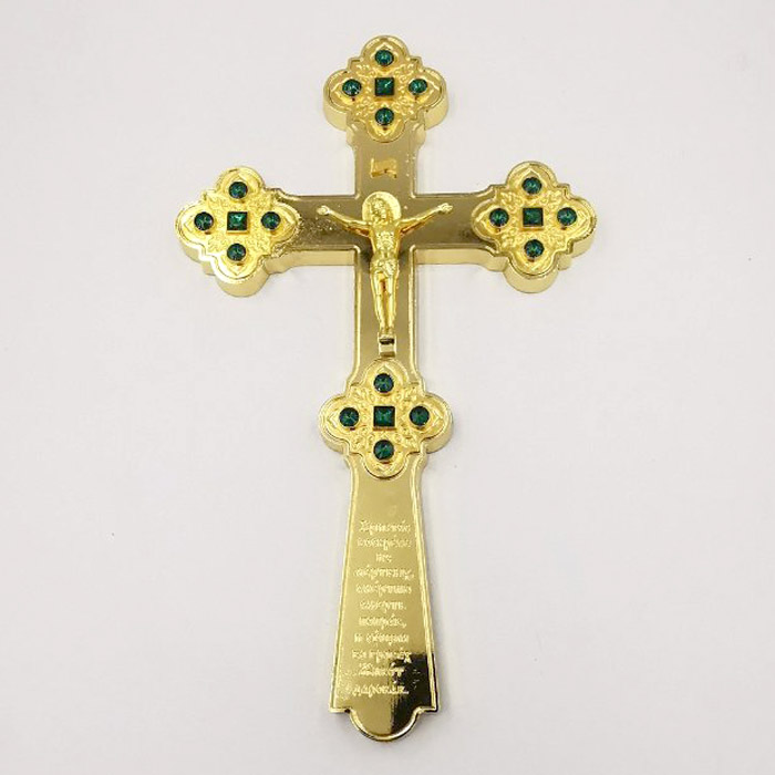 Найменування: Хрест напрестольний зелені камінці ЧК-жовтий