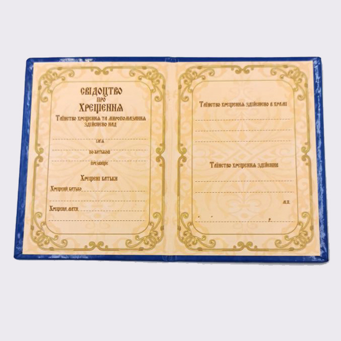 Свідоцтво про хрещення тв.паліт. (укр.) ПЛ-3015.00 грн.